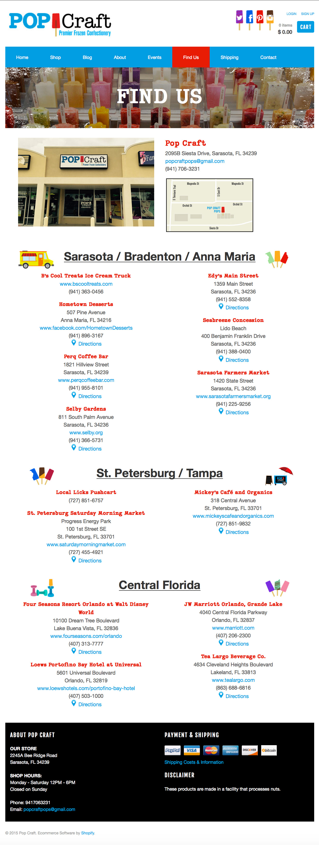 Create an e-commerce site using Shopify to promote Pop Craft popsicles. Stay true to fun and child-like branding with illustrative elements that reflect the design of the logo. Interactive hover effect on social media icons "take a bite" out of the pops!